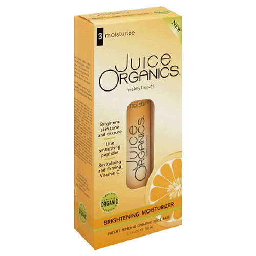 Healthy beauty. Brightens skin tone and texture. Line smoothing peptides. Revitalizing and firming vitamin C. Made with certified organic ingredients. Patent pending organic juice base. Juice Organics Wisdom No. 3: Your skin absorbs what you put on it. Nourish your skin with safe, healthy organic ingredients. You'll love the way your skin looks and feels. This antioxidant-rich moisturizer combines powerful age-defying peptides, alpha lipoic acid, co-enzyme Q10, and vitamin antioxidants with a brightening hydroxy acid complex of certified organic apple, lemon and raw cane sugar to brighten skin tone and texture, help smooth fine lines, revitalize and firm for healthy, beautiful skin. Juice Organics' patent pending base expertly blends certified organic juice concentrates to deliver powerful antioxidants, age-defying hydroxy acids, essential vitamins and nutrients. Juice Organics' certified organic ingredients meet the strict guidelines of the USDA National Organic Program. No animal testing. 100% Vegetarian ingredients. Made in USA.