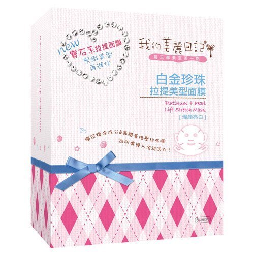 My Beauty Diary Facial Mask-Platinum+Pearl Life Stretch Mask(8 pcs) New Edition Contains skin-brightening pearl extracts and moisture-locking platinum property, deliver the skin-care power of these two marine and mineral element. Clarify and brighten skin with natural fruit ingredients such as lemon, orange, and kiwi, which can first remove layer of dead cells to allow better absortion of pearl and platinum serum later. Makes your skin reveal radiance and whiteness. # Special designed sheet can quickly and completely distribute nutrients to your skin. The 360 degree stretch-lift design also can tighten your cheeks and make it look slimmer. # Suitable for all skin type, especially great for skin that appears fine line and lack of radiance