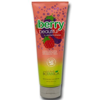 Long lasting dark tanning natural bronzer.Powerful combination of immediate bronzers for dark color.Natural melanin enhancers prepare skin for dark color.Powerful combination of age fighting berries that work to even skin tone.Vitamin E and Olive Oil plus Aloe help protect against future signs of aging.Fragrance: Berry Delight, Top notes Raspberry and lemon, Mid notes Rose and Violet, Dry note Vanilla